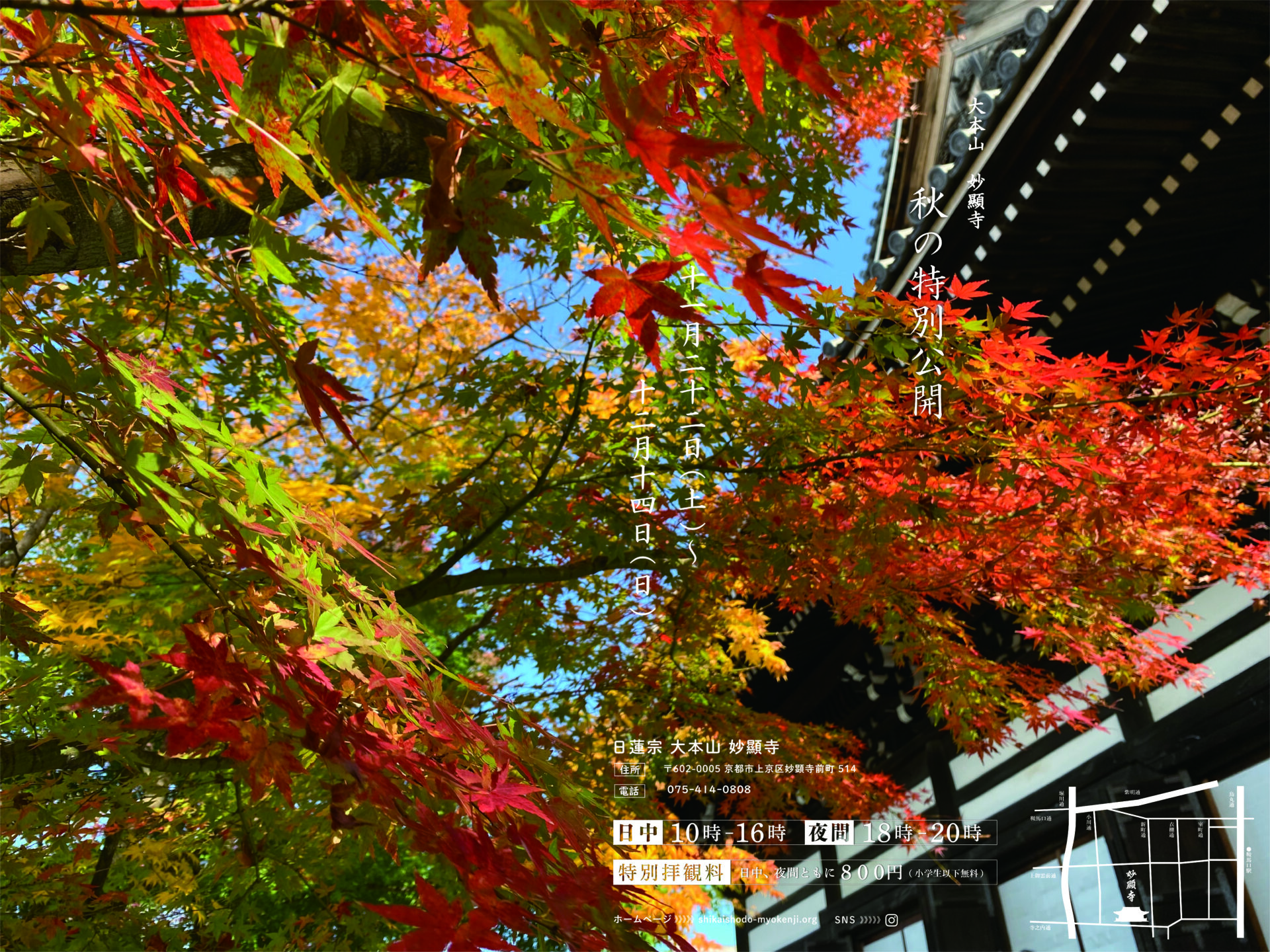 妙顕寺の紅葉は例年では、11月末から12月上旬に見頃を迎えますが